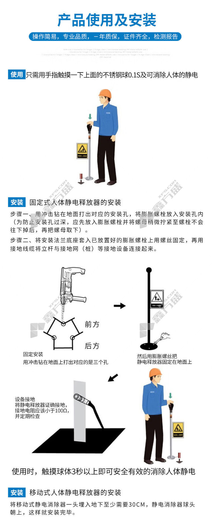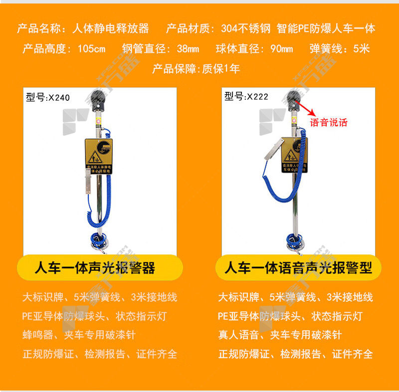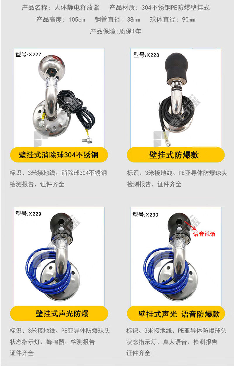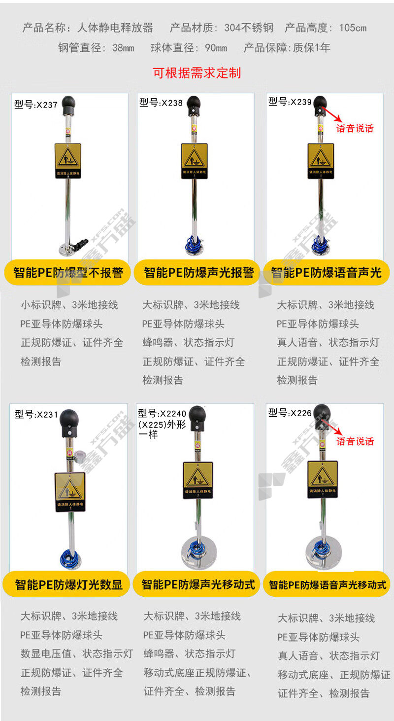 首页 首页 > 谋福 X239智能PE防爆型人体静电释放器 X239 触摸球90mmφ 高1.05m