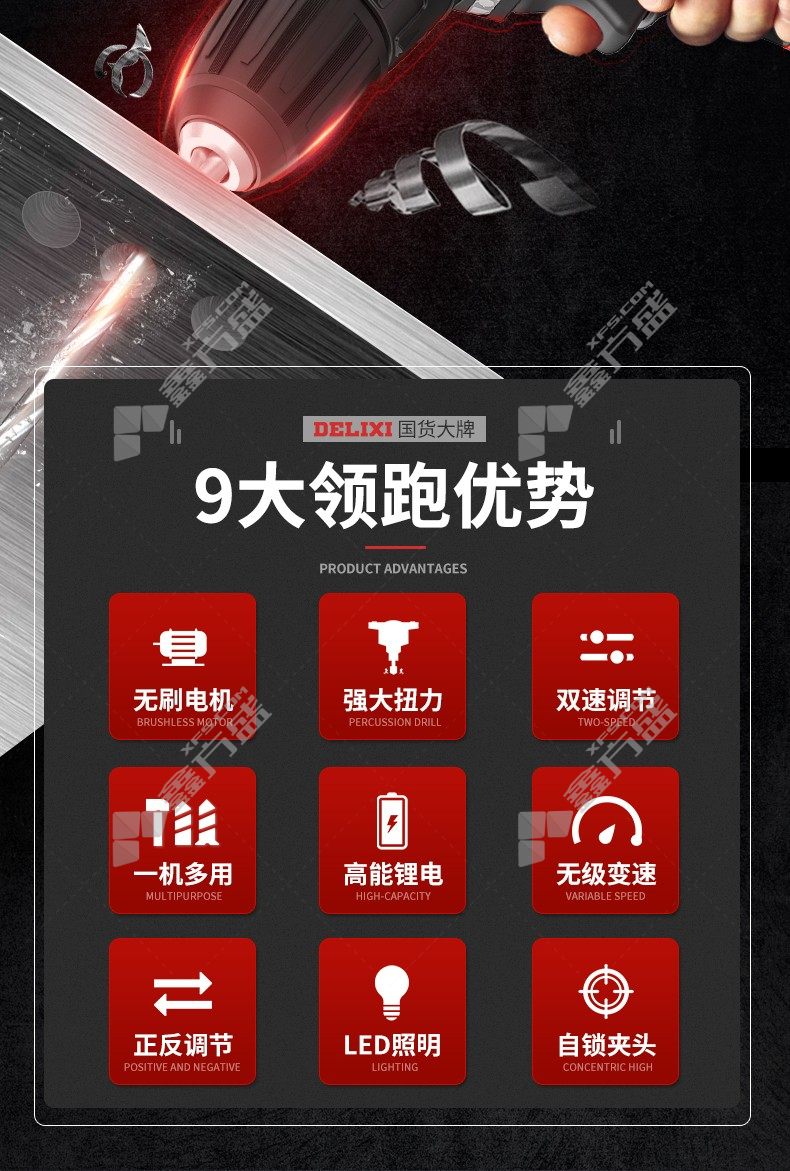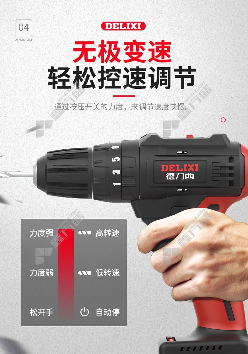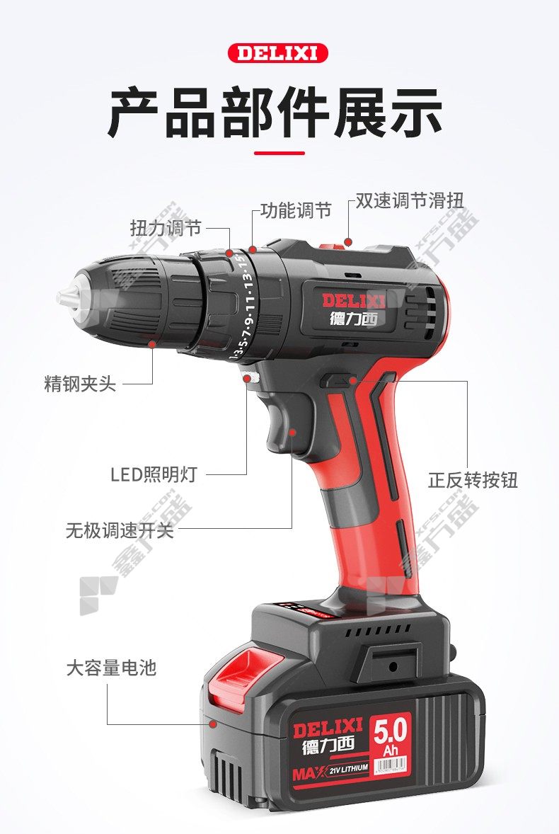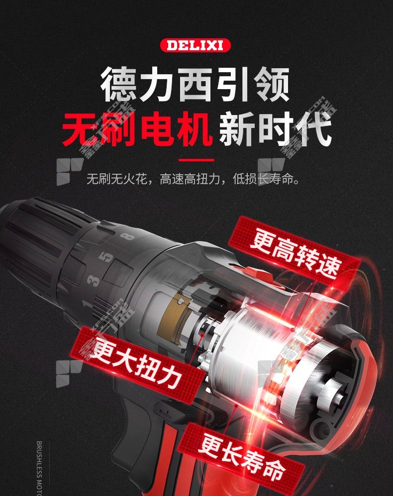 • 德力西DELIXI 5.0Ah无刷冲击一电一充手电钻 5.0Ah*1组