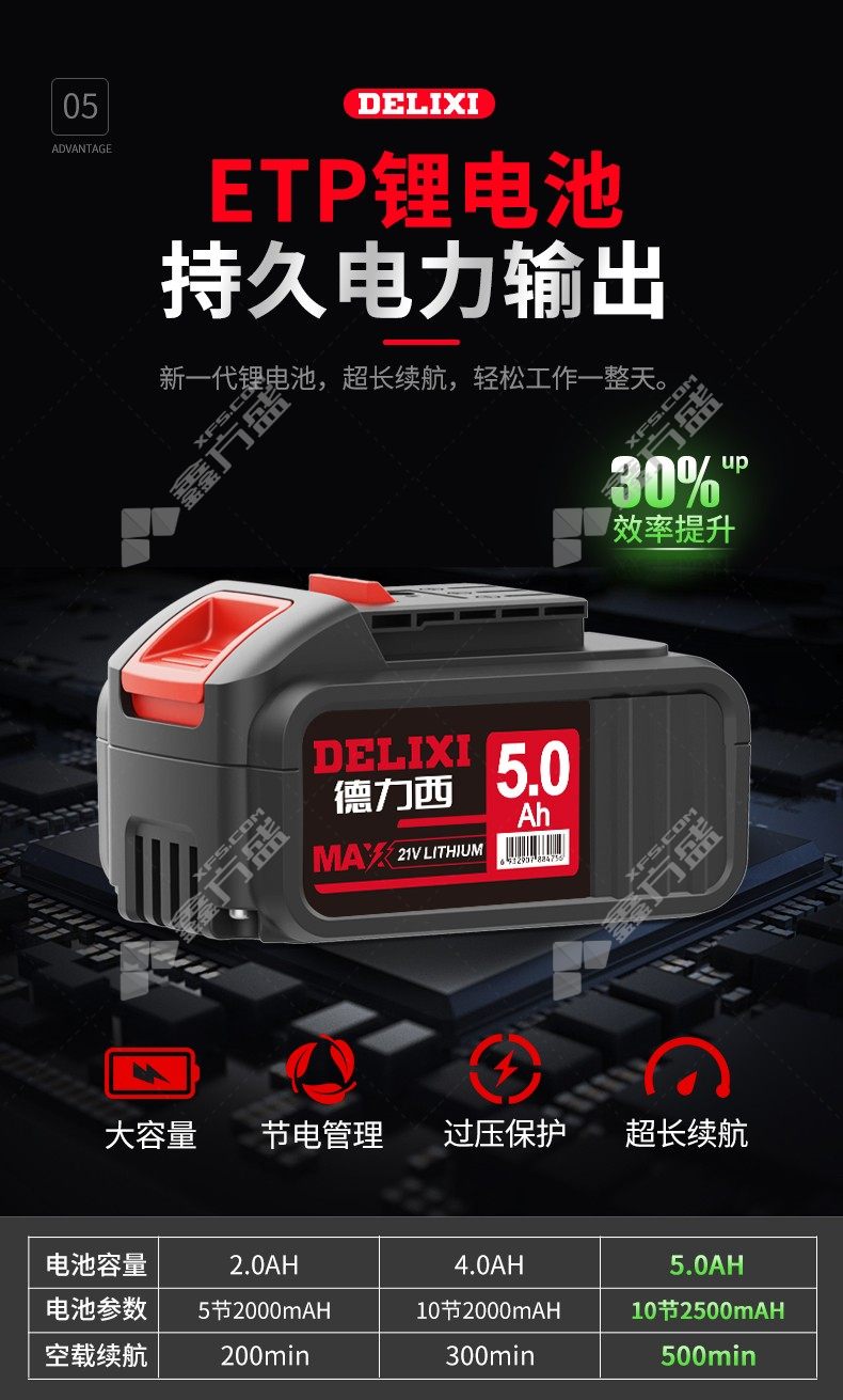 电池规格: 5.0Ah*1组