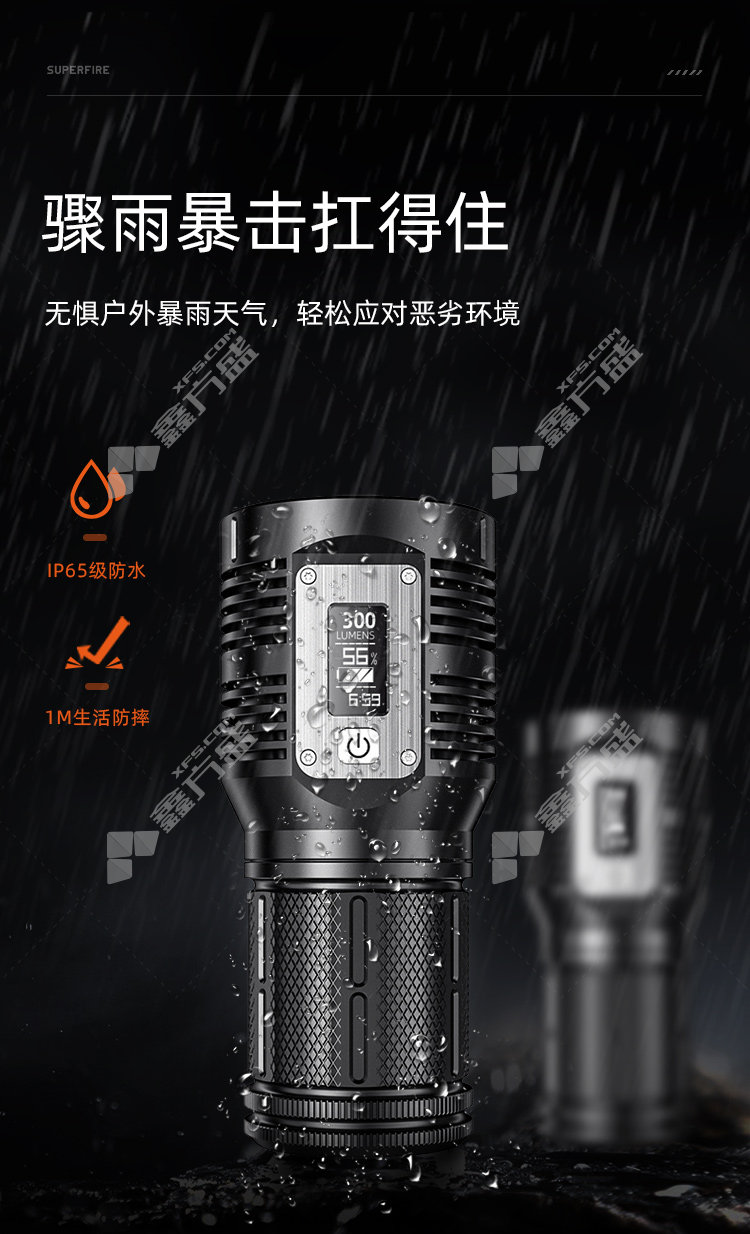 • 神火 M5 2600mah 中型强光手电筒 36W IP65 6档 M5