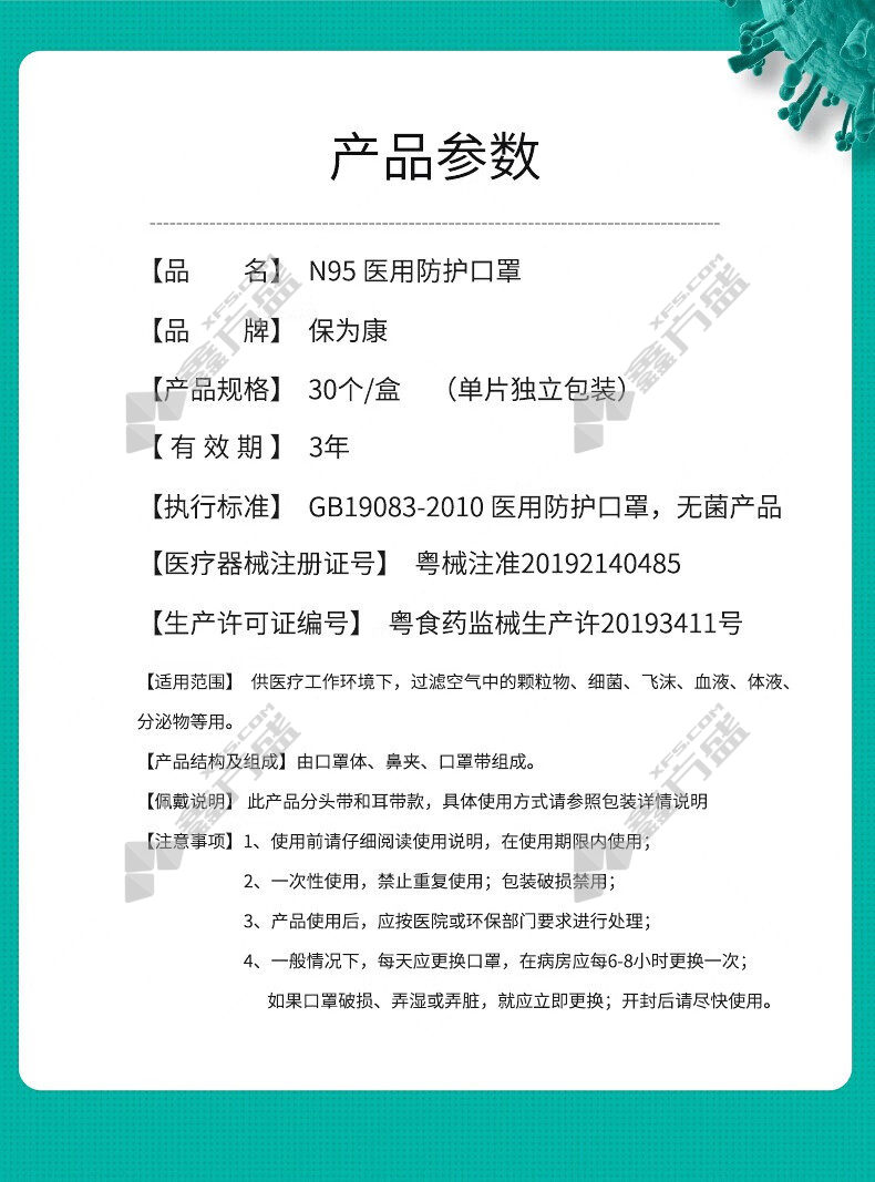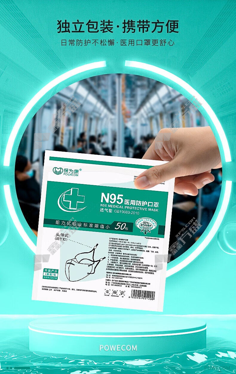 商品名称: 保为康 成人灭菌一次性独立包装N95医用防护口罩 耳带款 3d立体
