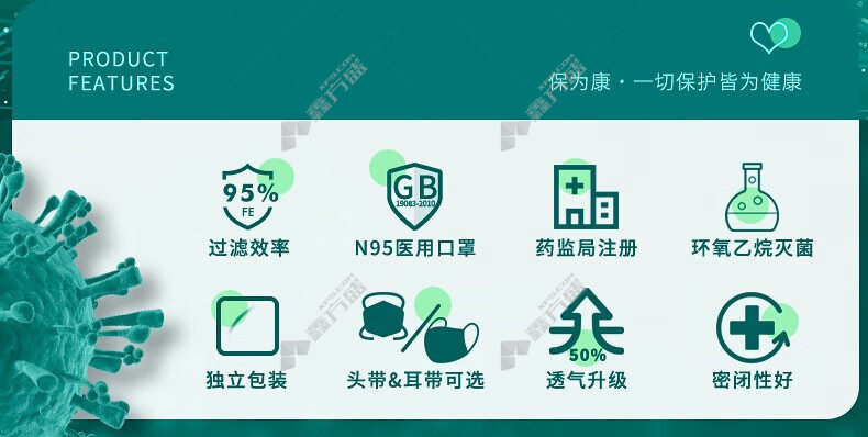 首页 首页 > 保为康 成人灭菌一次性独立包装N95医用防护口罩 耳带款 3d立体