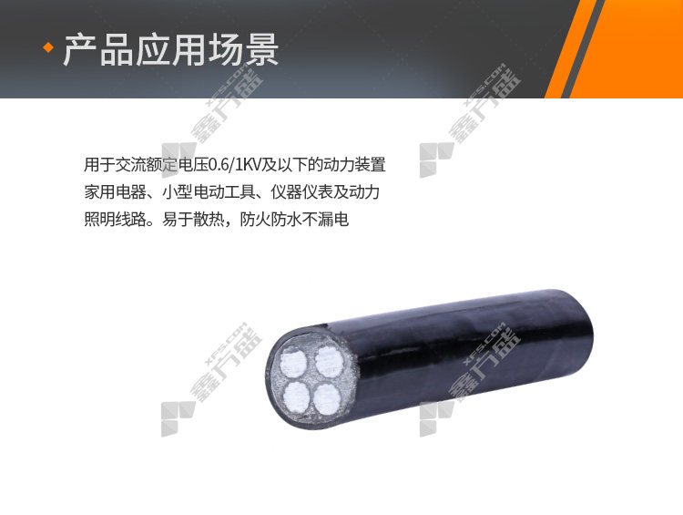 低压铝芯电力电缆(YJLV)绝缘材质:交联聚乙烯