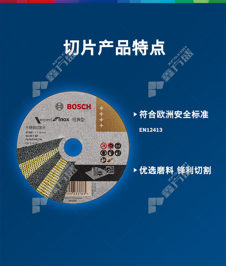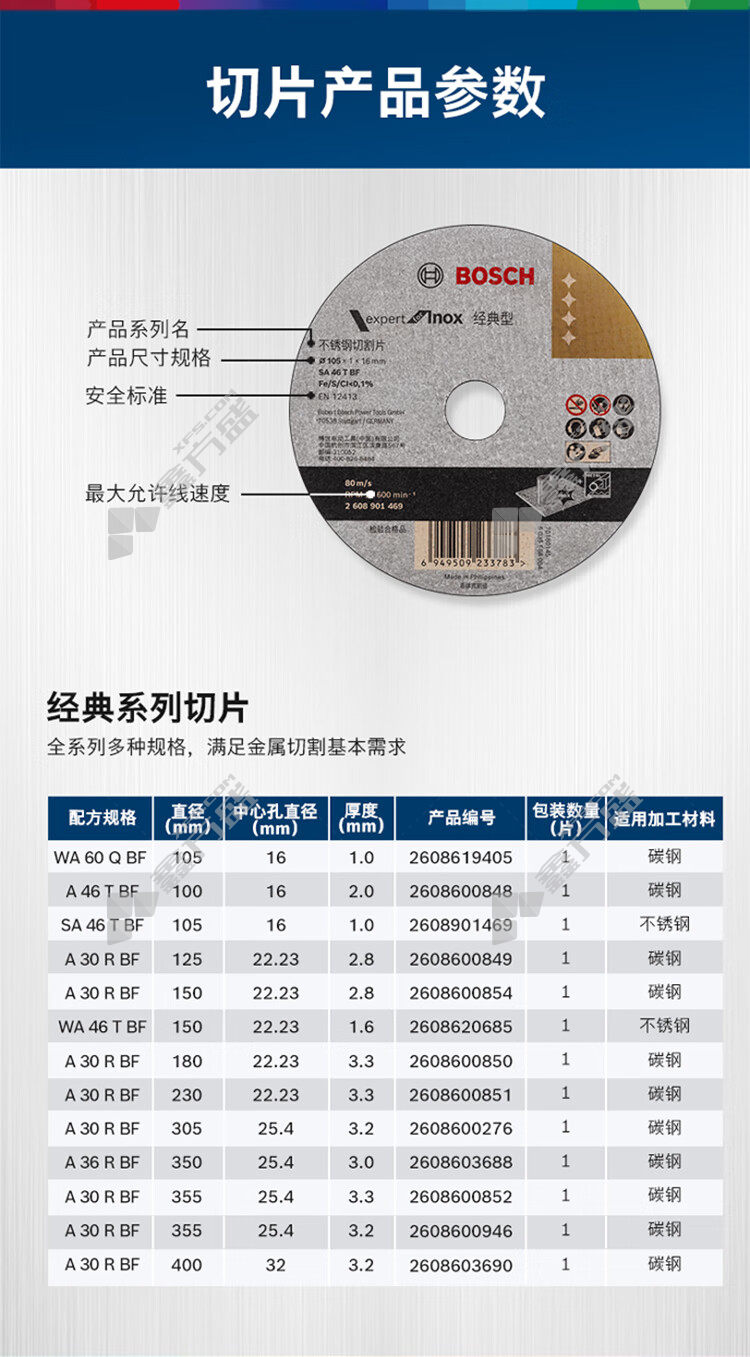 商品名称: 博世 不锈钢切割专业型切割片 105x1.0x16mm 2 608 901 469