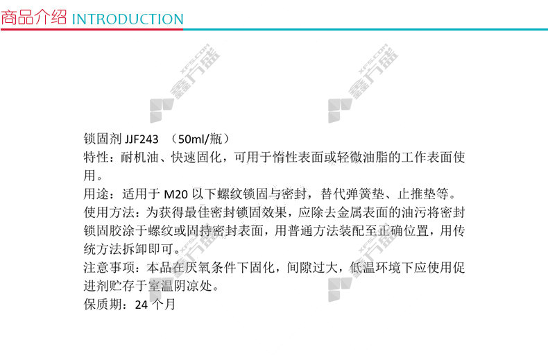 商品名称: 江洁枫 锁固剂 JJF243 50ml/支