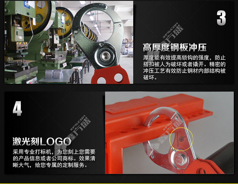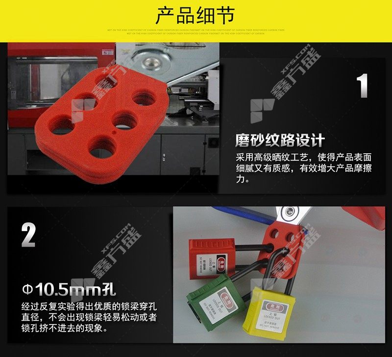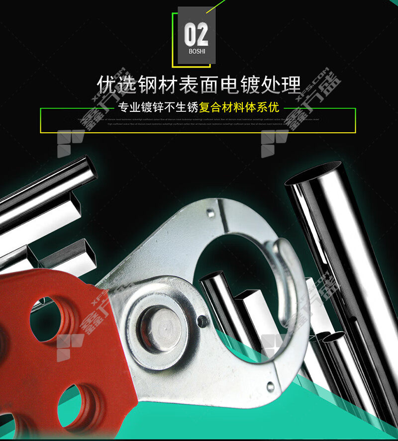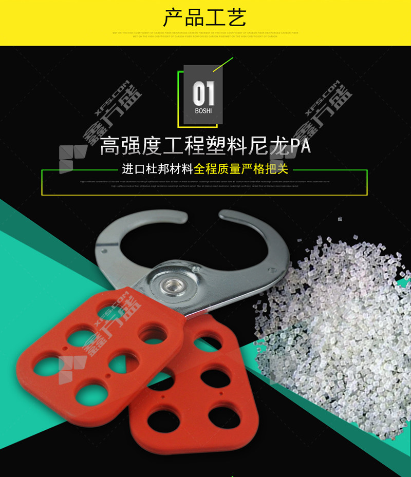 安全锁材质:手柄由工程塑料尼龙注塑成型,表面镀锌处理