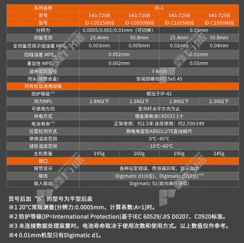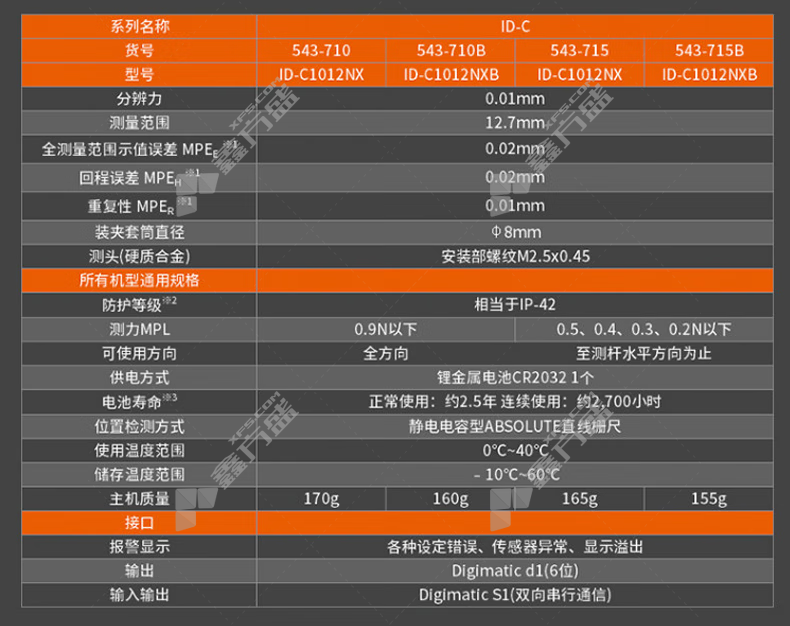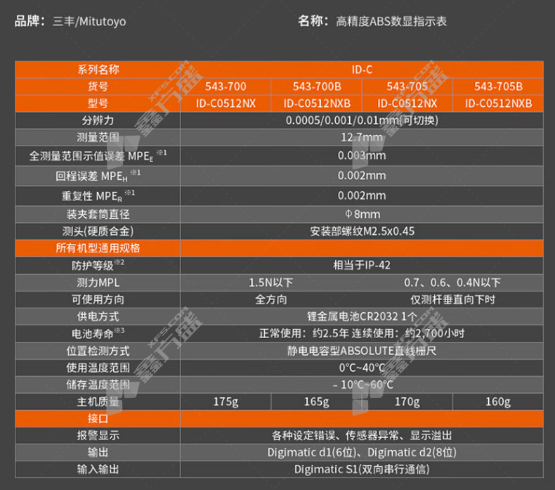 • 三丰 数显千分表 0-12.7mm 543-720B/ID-C0525NXB
