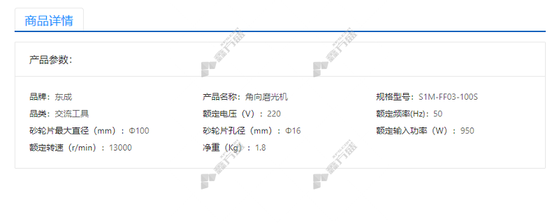 商品名称: 东成 S1M-FF03-100S 角磨机 S1M-FF03-100S 13000r/min 950W