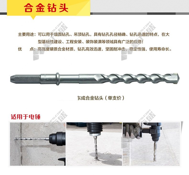 充电工具配件适用场景:钢筋混凝土、水泥墙、石头等的钻孔