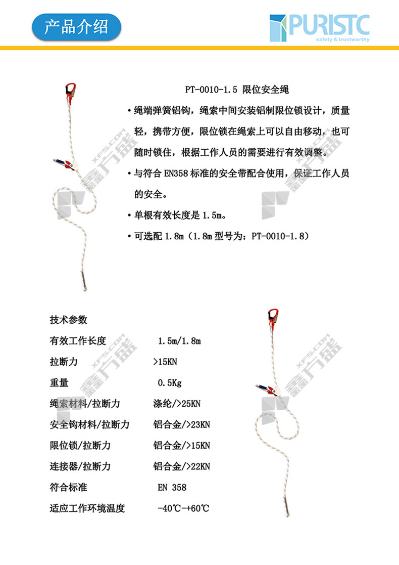 商品名称: 普瑞斯特 限位安全绳 PT-0010-1.5 单根有效长度1.5m
