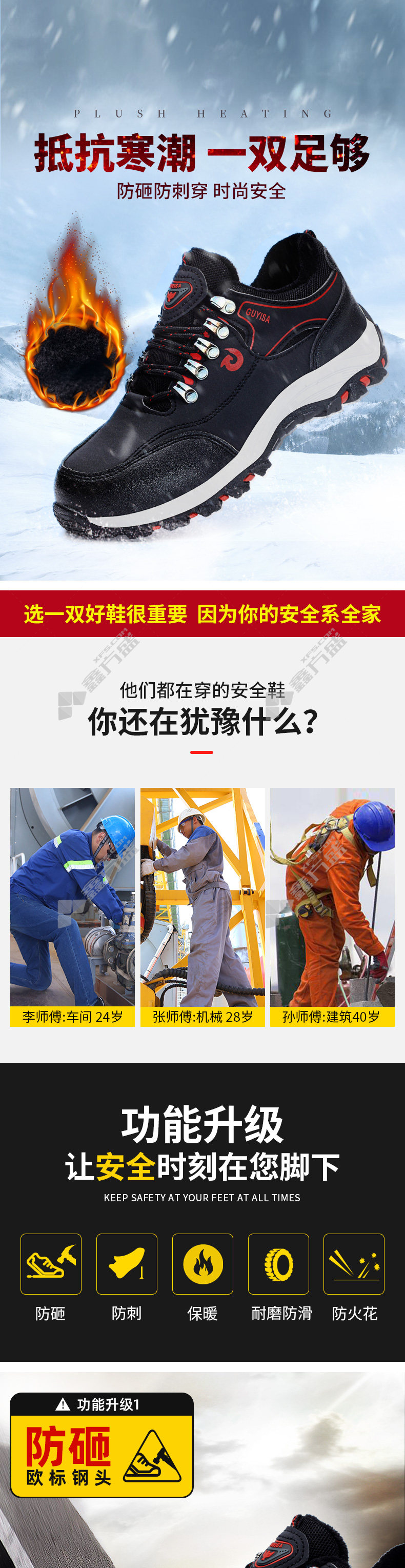 商品名称: 古伊萨 8164冬季款保暖防砸防刺穿安全劳保鞋 36码 黑色 8164