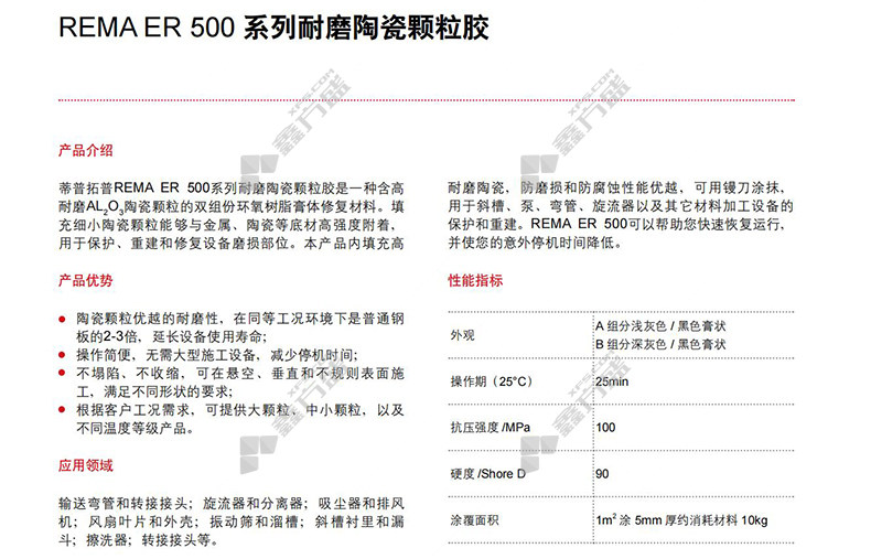 通用修补胶适用温度范围:<80℃