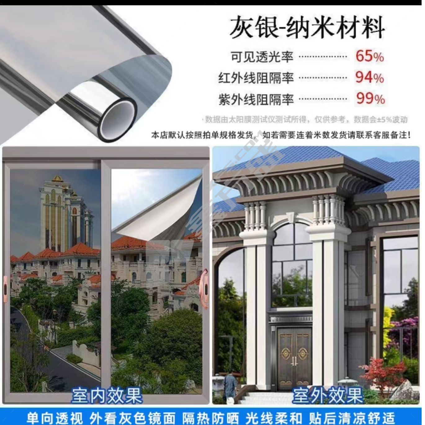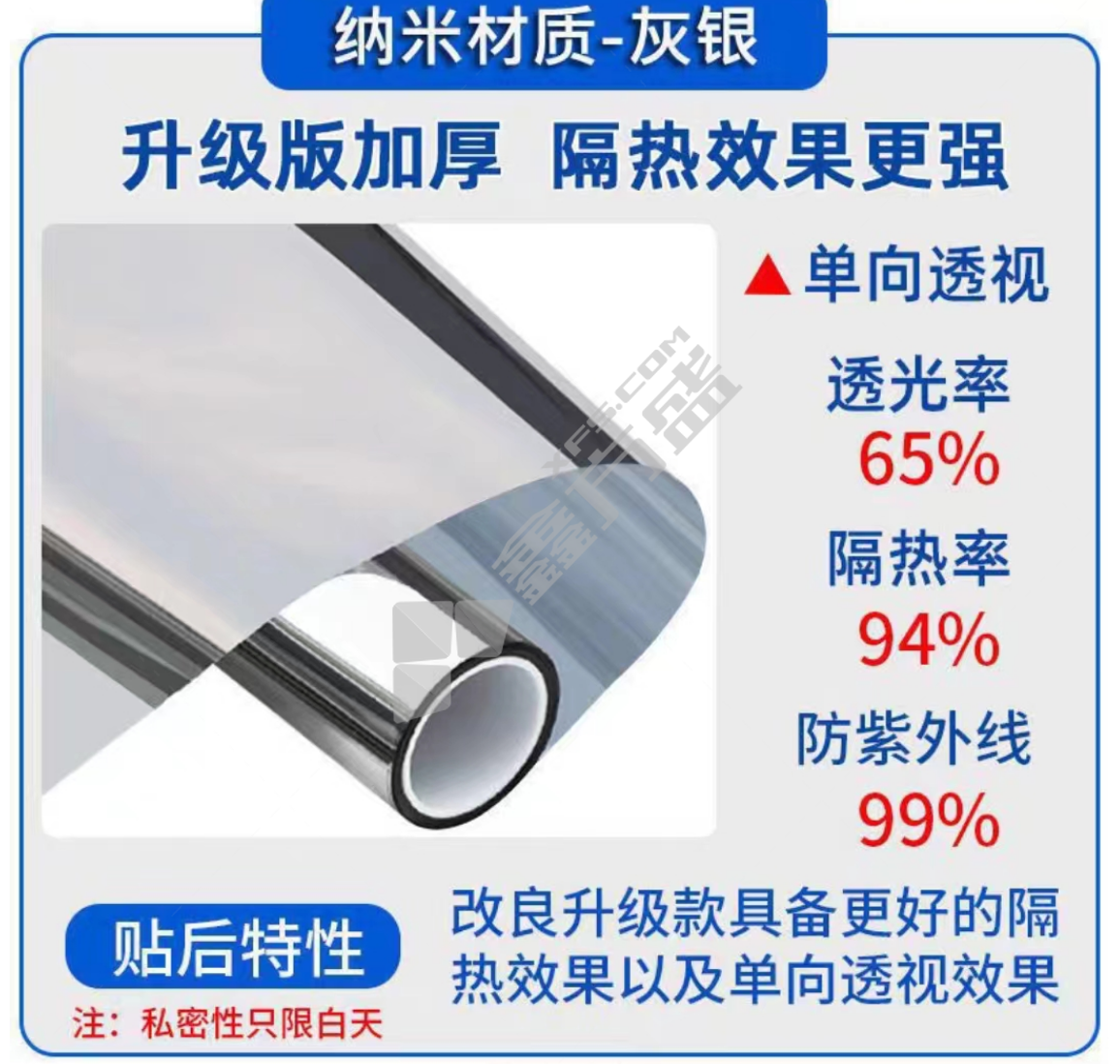 商品名称: 遮光膜隔热膜 1*3m单透灰银
