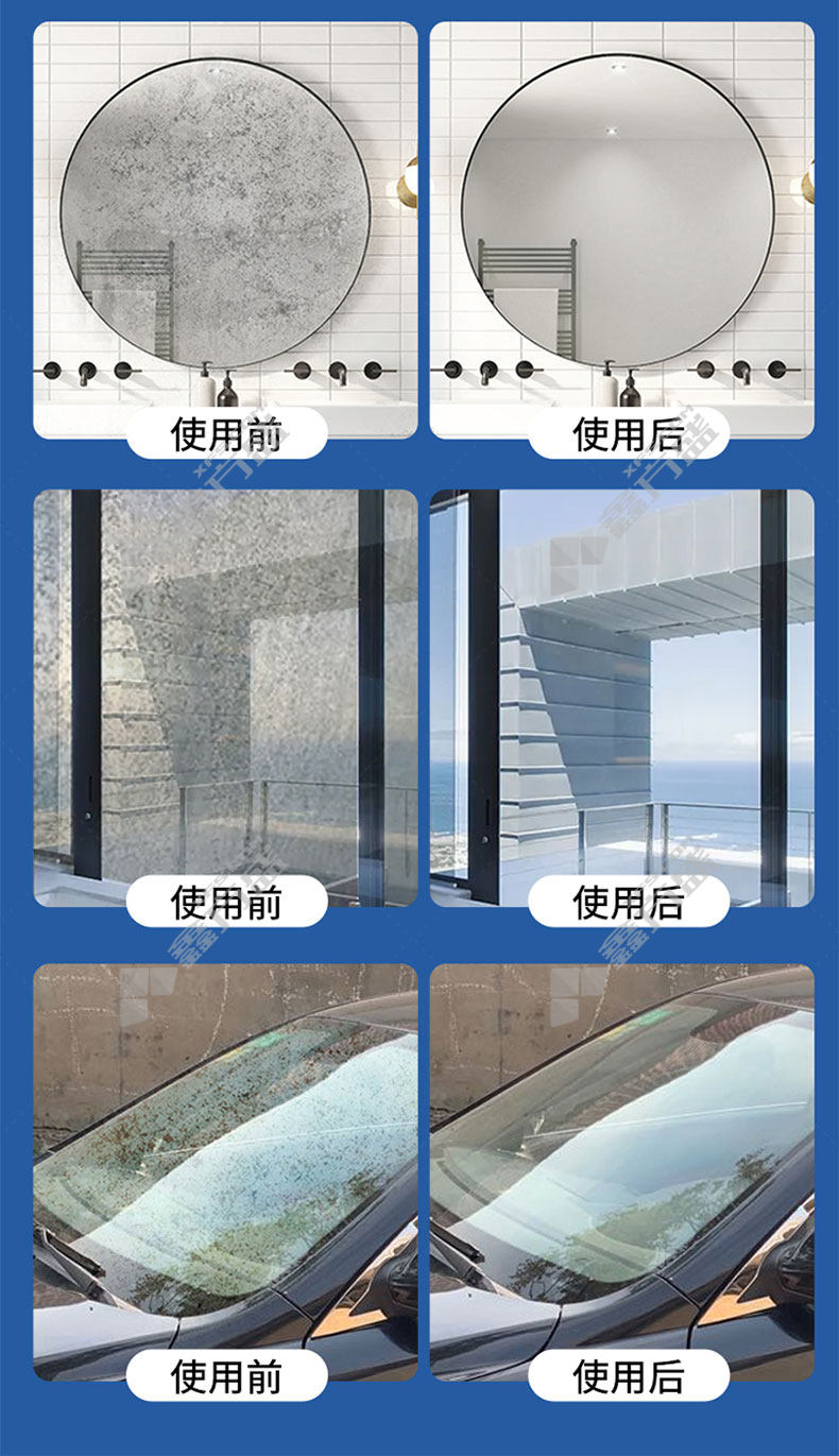 玻璃清洁剂适用场景:玻璃、汽车车窗、镜子