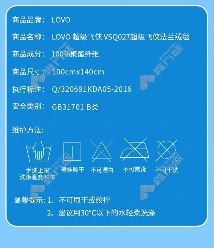 商品名称: LOVO 超级飞侠法兰绒毯 VSQ027 100*140cm