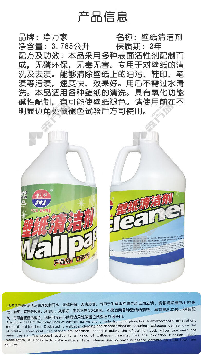 商品名称: 净万家 壁纸清洁剂 3.785公升 8076