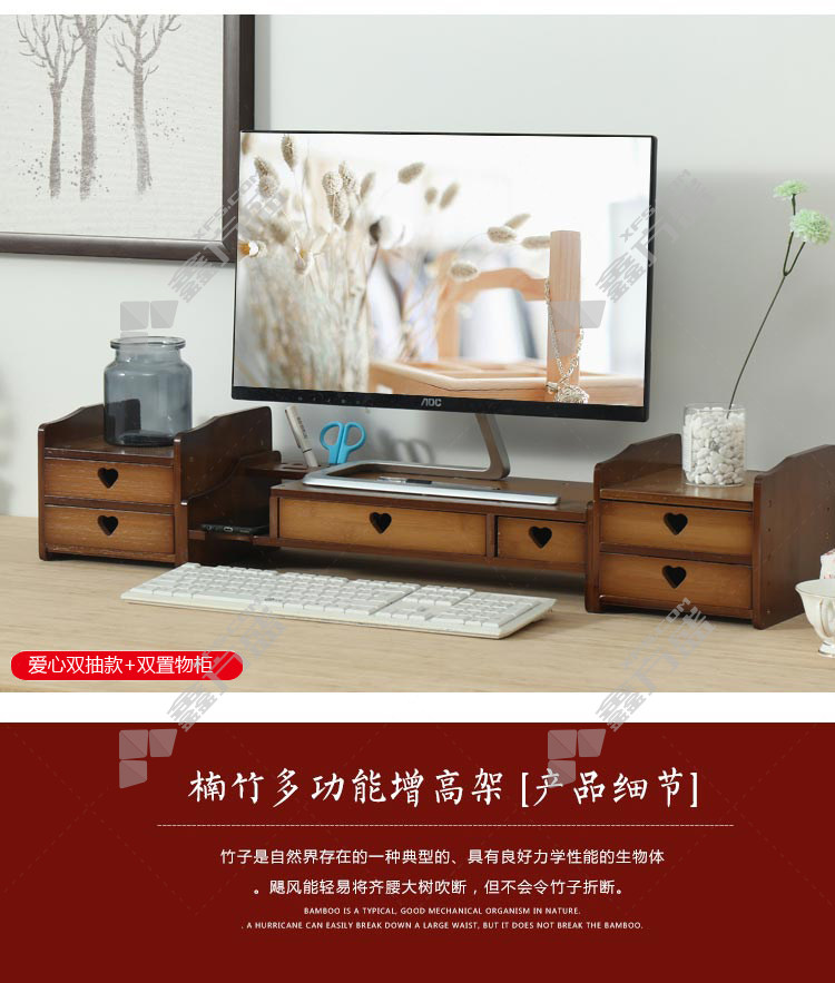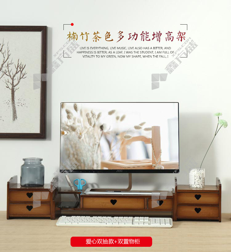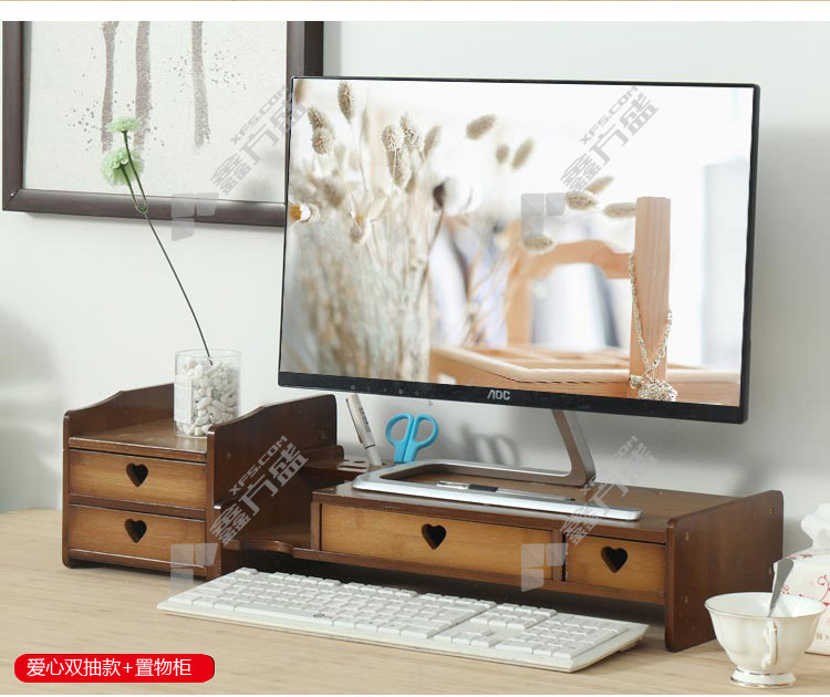 倍方 73140茶色爱心款双抽屉显示器桌 73140