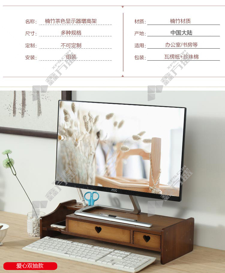 商品名称: 倍方 73140茶色爱心款双抽屉显示器桌 73140