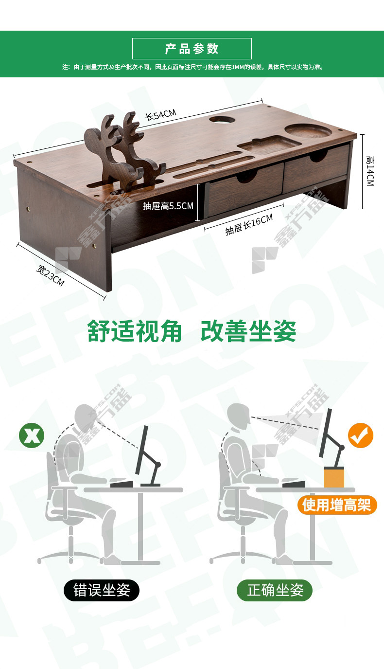 商品名称: 倍方 74437胡桃木色小鹿双抽屉显示器增高架 74437
