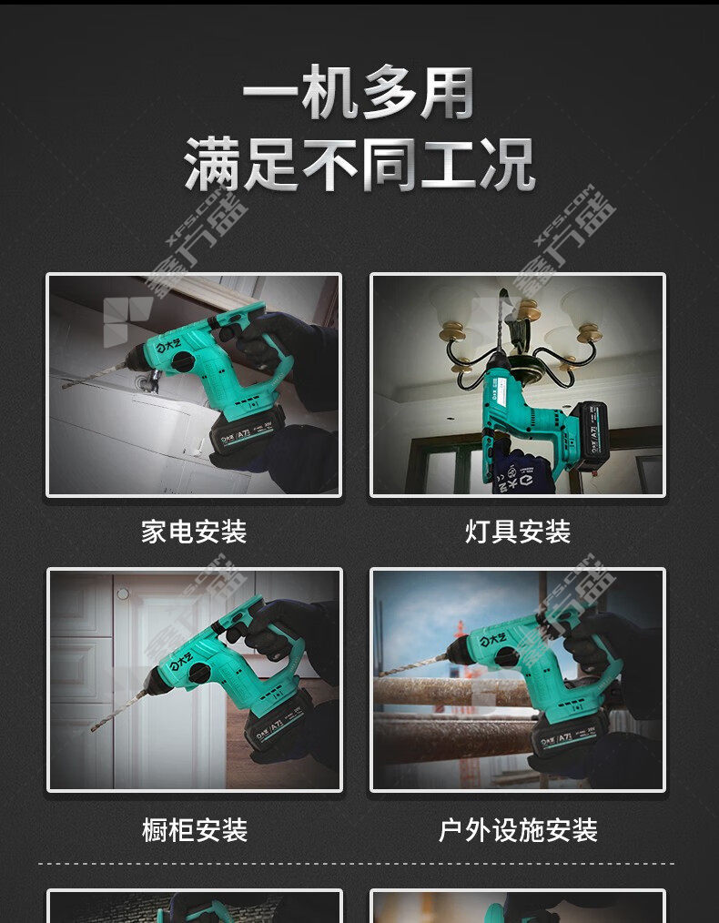 充电式电锤适用场景:可用于混凝土墙面打孔,岩石打孔,户外监控安装等