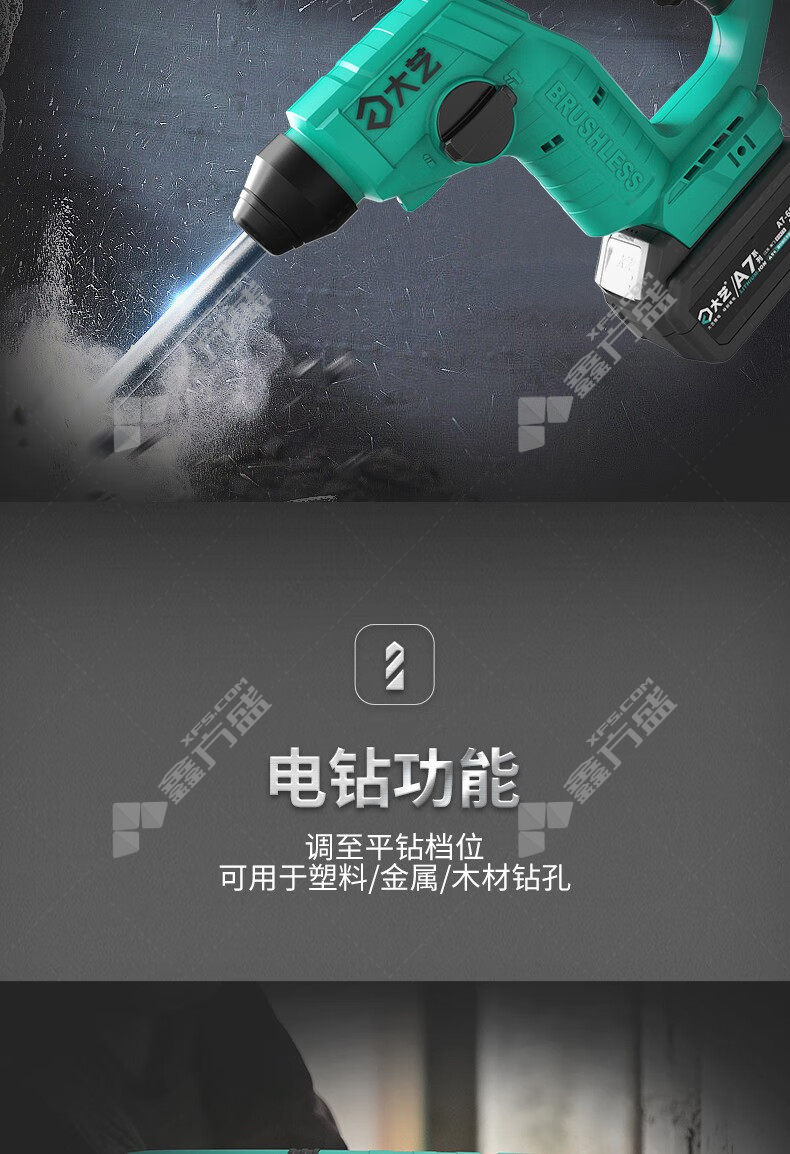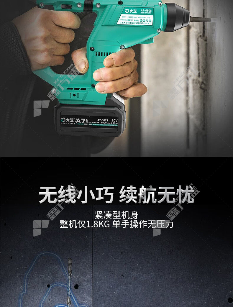 商品名称: 大艺 A7-6608 充电式电锤 裸机 A7-6608 20V 0-1400r/min