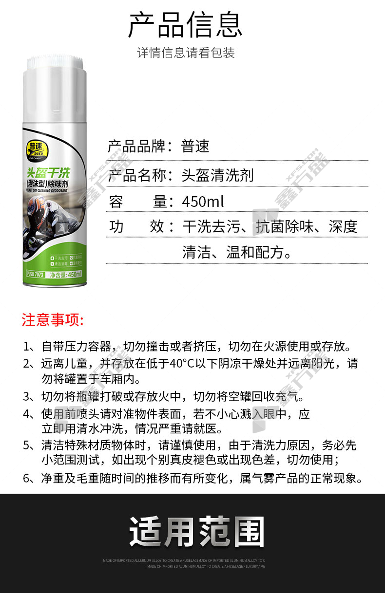 商品名称: 普速 头盔干洗除味剂 PUSU7073 450ml