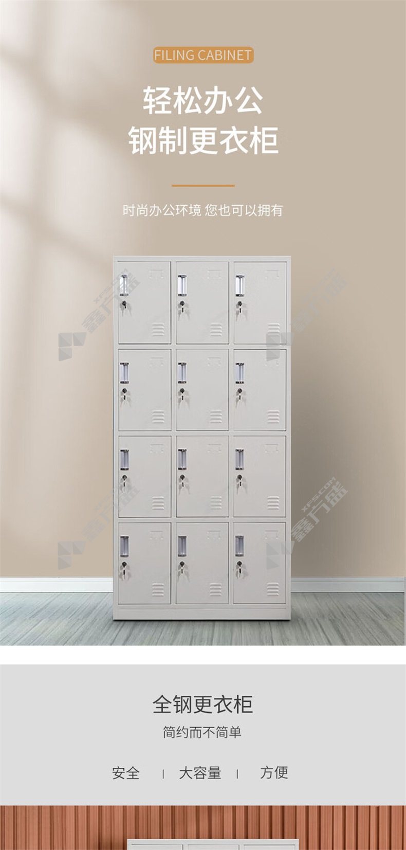 首页 首页 > 荣美盛 钢制十二门更衣储物柜 900*350*1800mm 0.35mm 灰白色