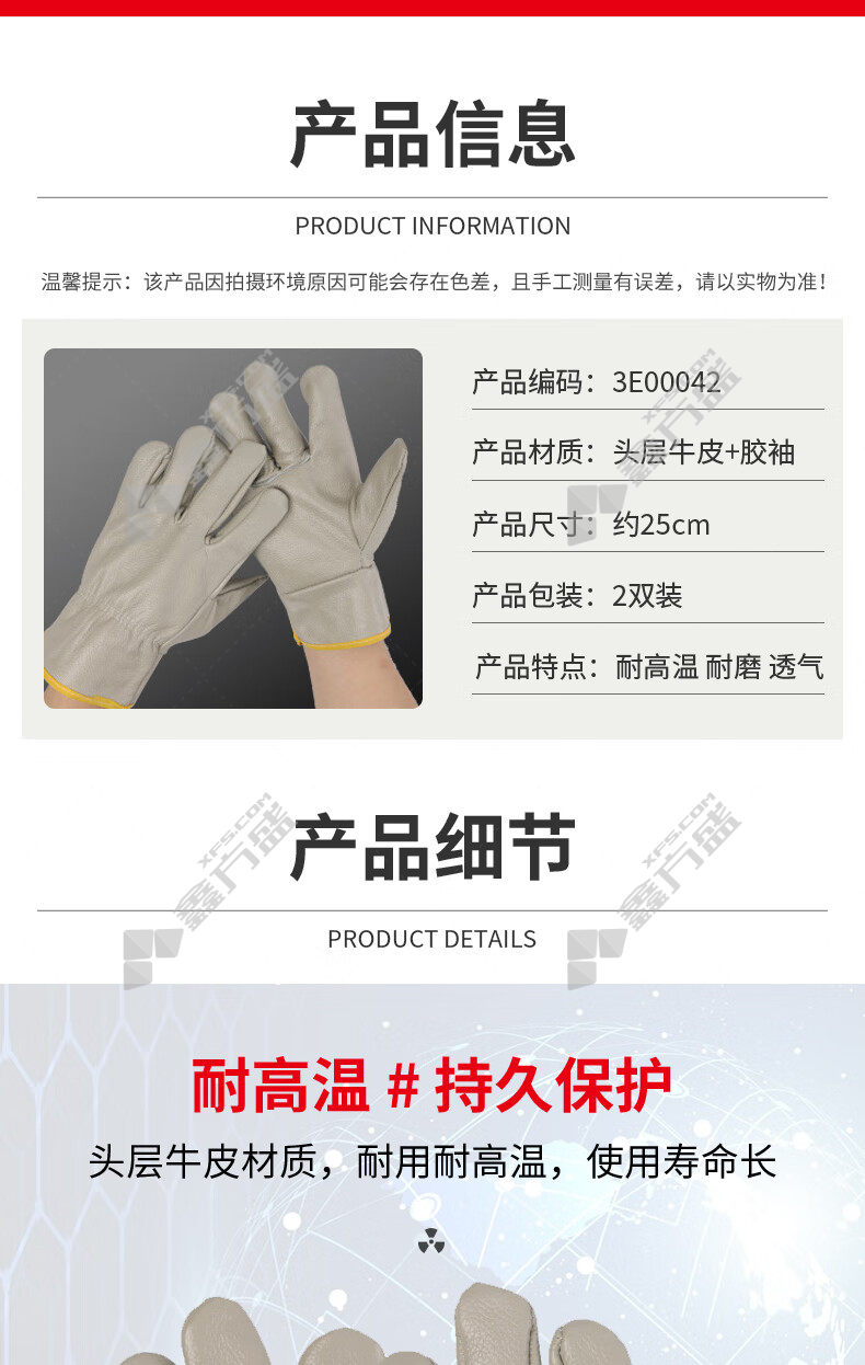 商品名称: 安赛瑞 3E00042头层全牛皮电焊手套 3E00042 25cm 浅色