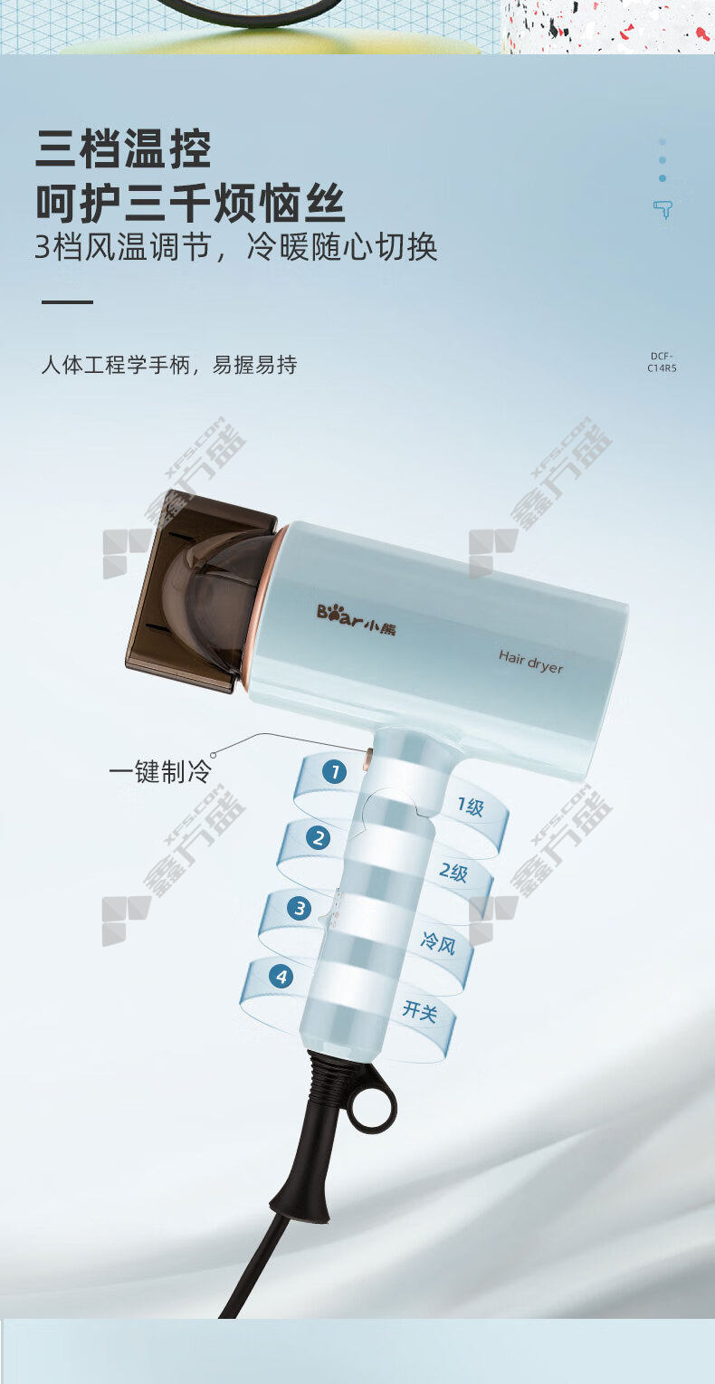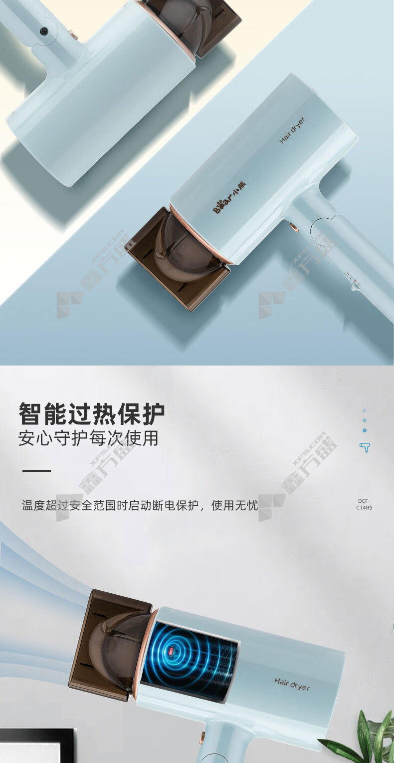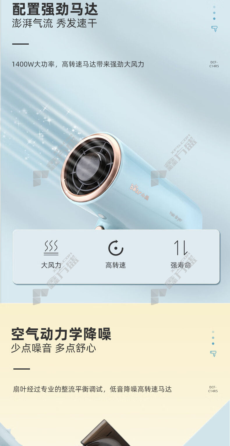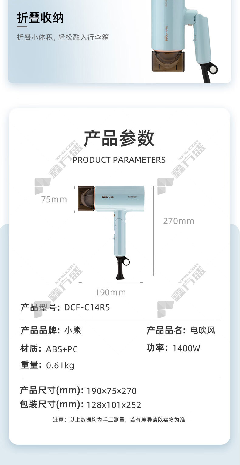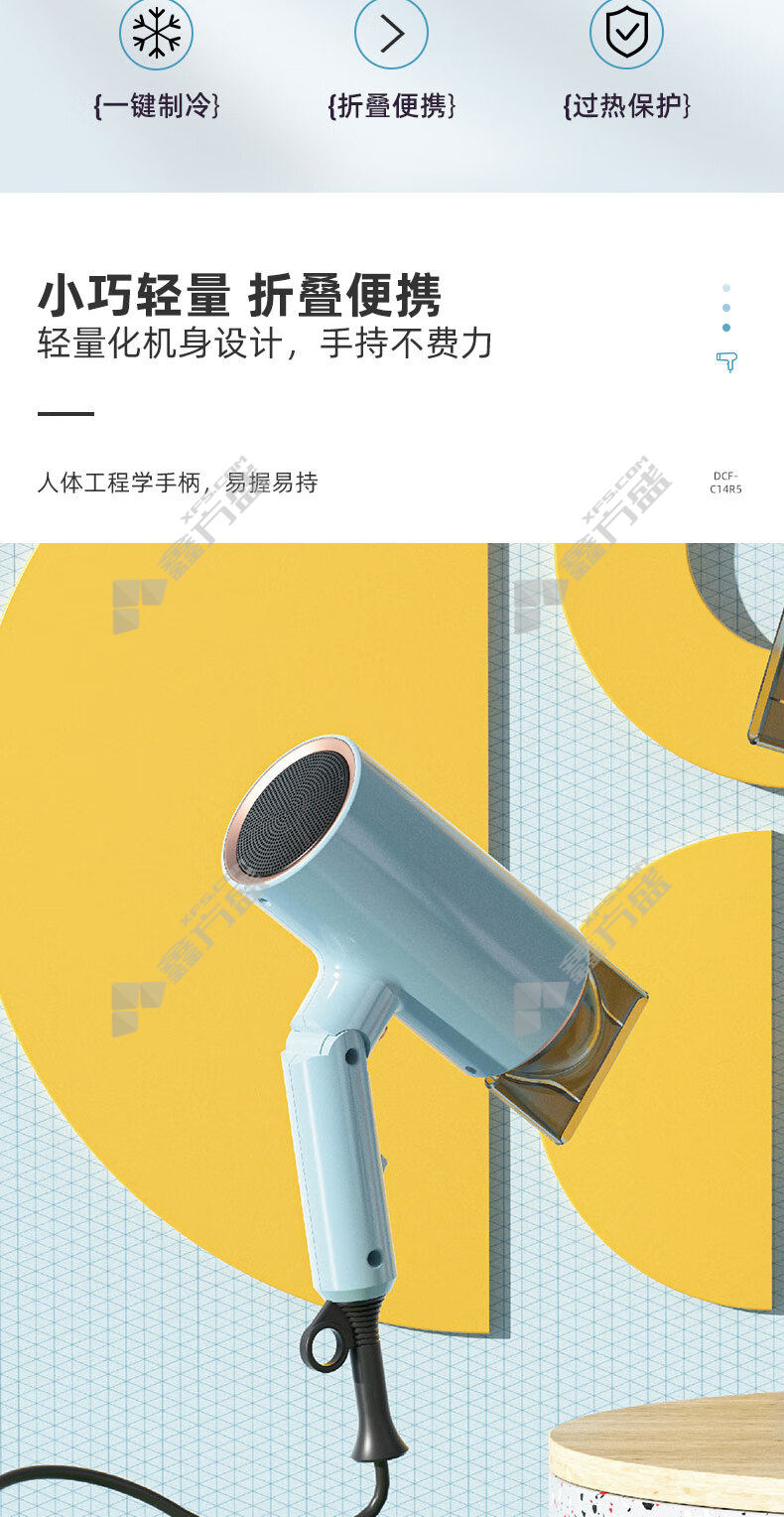 商品名称: 小熊 折叠便携快干护发电吹风 1400W 天蓝色 DCF-C14R5