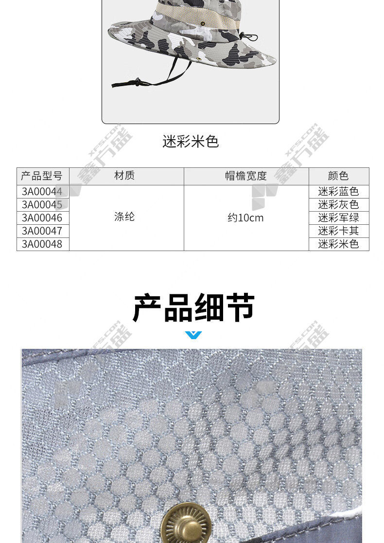 商品名称: 安赛瑞 3A00045户外迷彩遮阳渔夫帽 3A00045 均码 灰色