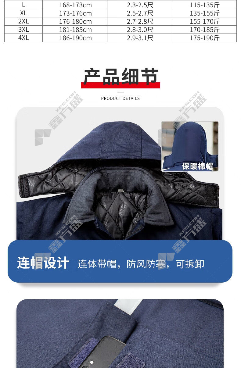 防寒服材质:棉80%