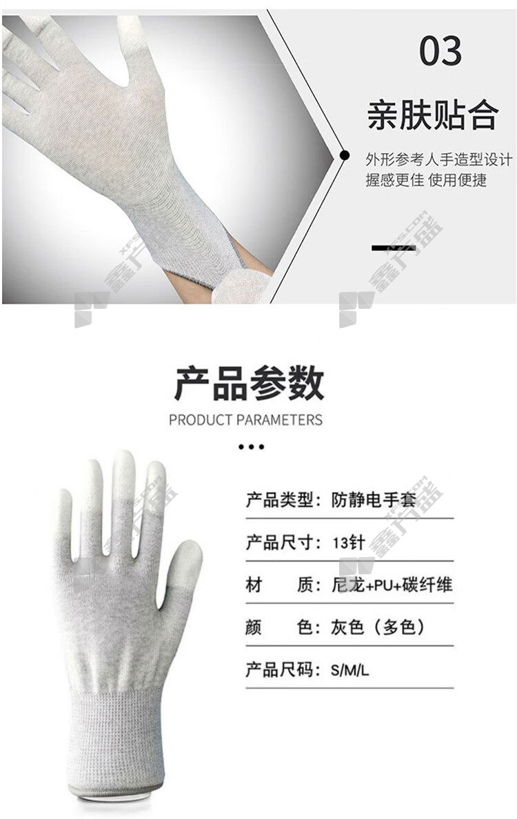 商品名称: 盛港 碳纤维PU涂指手套 大号 尼龙灰边