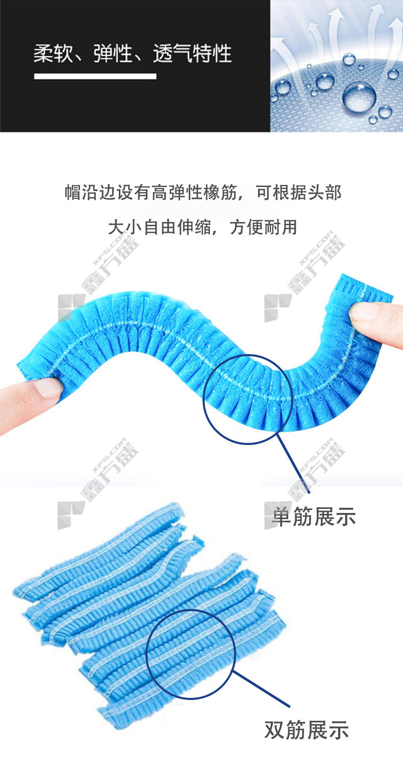 商品名称: 谋福 双筋条形一次性头套帽 71 均码 蓝色