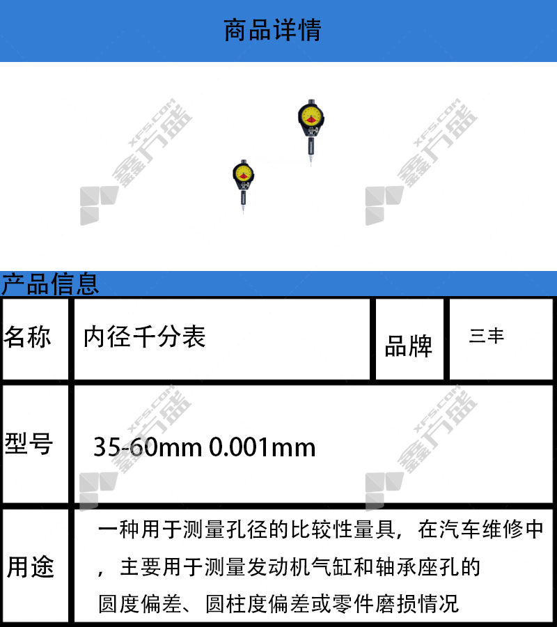 商品名称: 内径千分表 35-60mm 0.001mm