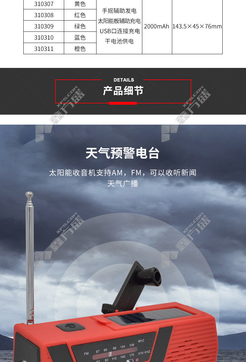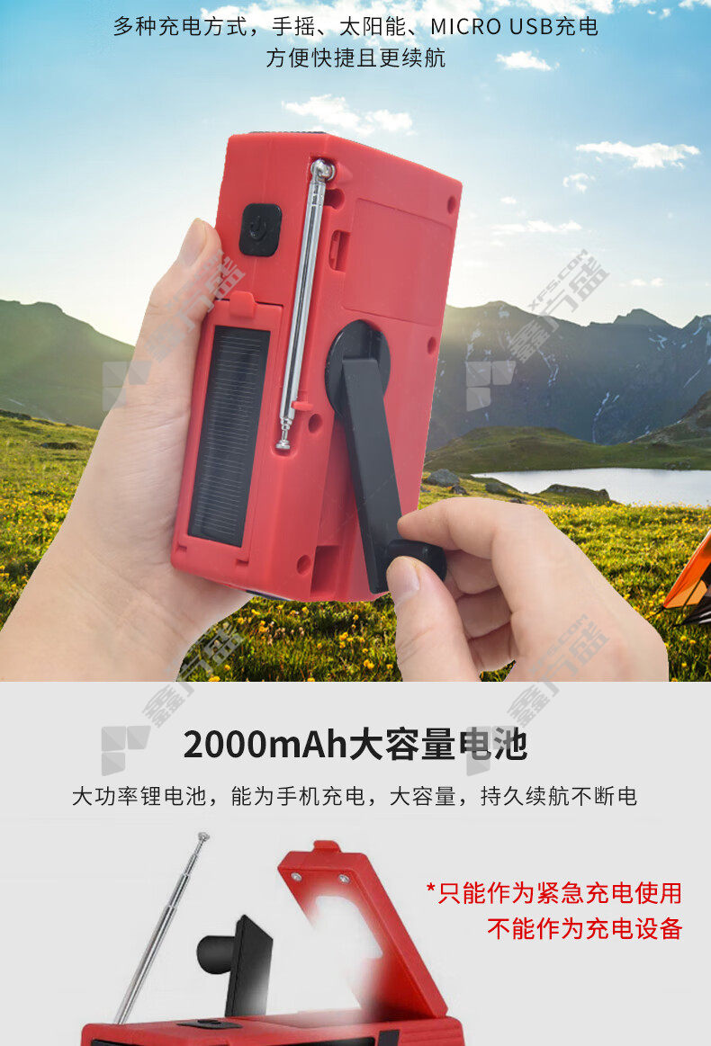 商品名称: 安赛瑞 消防手摇自发电手动应急收音机2000mAh 310308红色