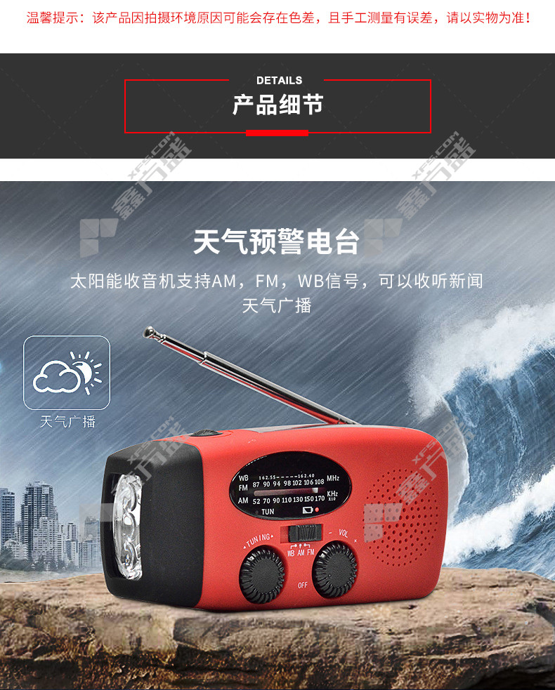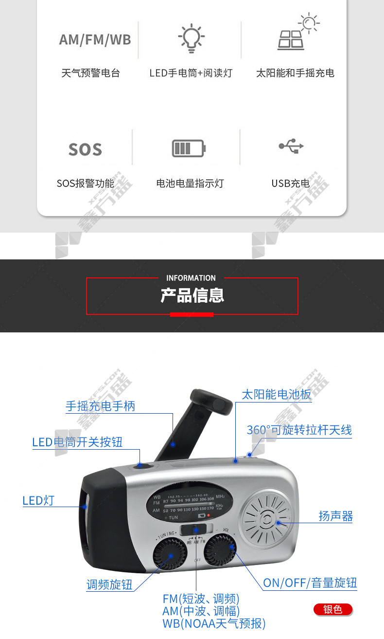 商品名称: 安赛瑞 太阳能手摇应急收音机 310320黑色1000mah