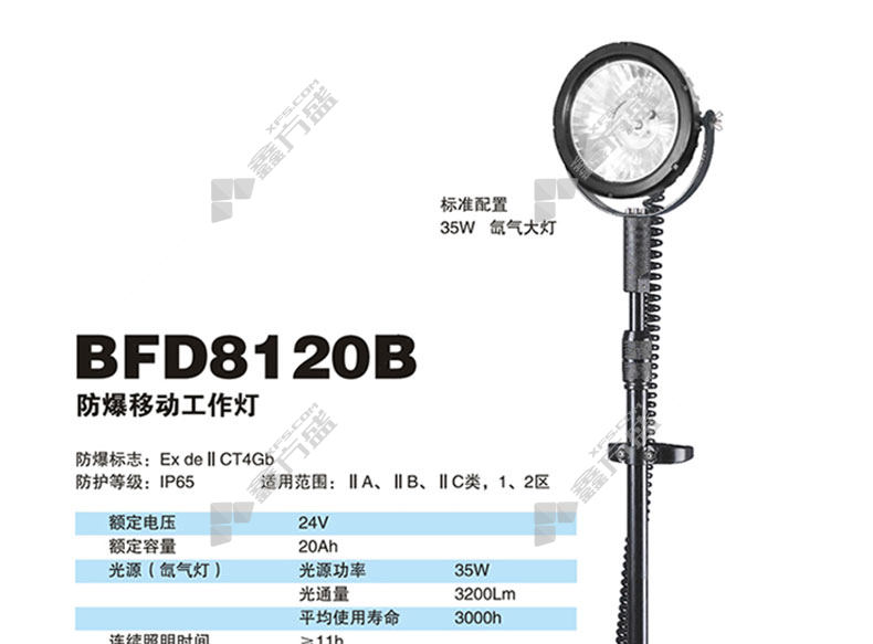 商品名称: 正辉 防爆移动工作灯 BFD8120B 氙气灯 24V 35W