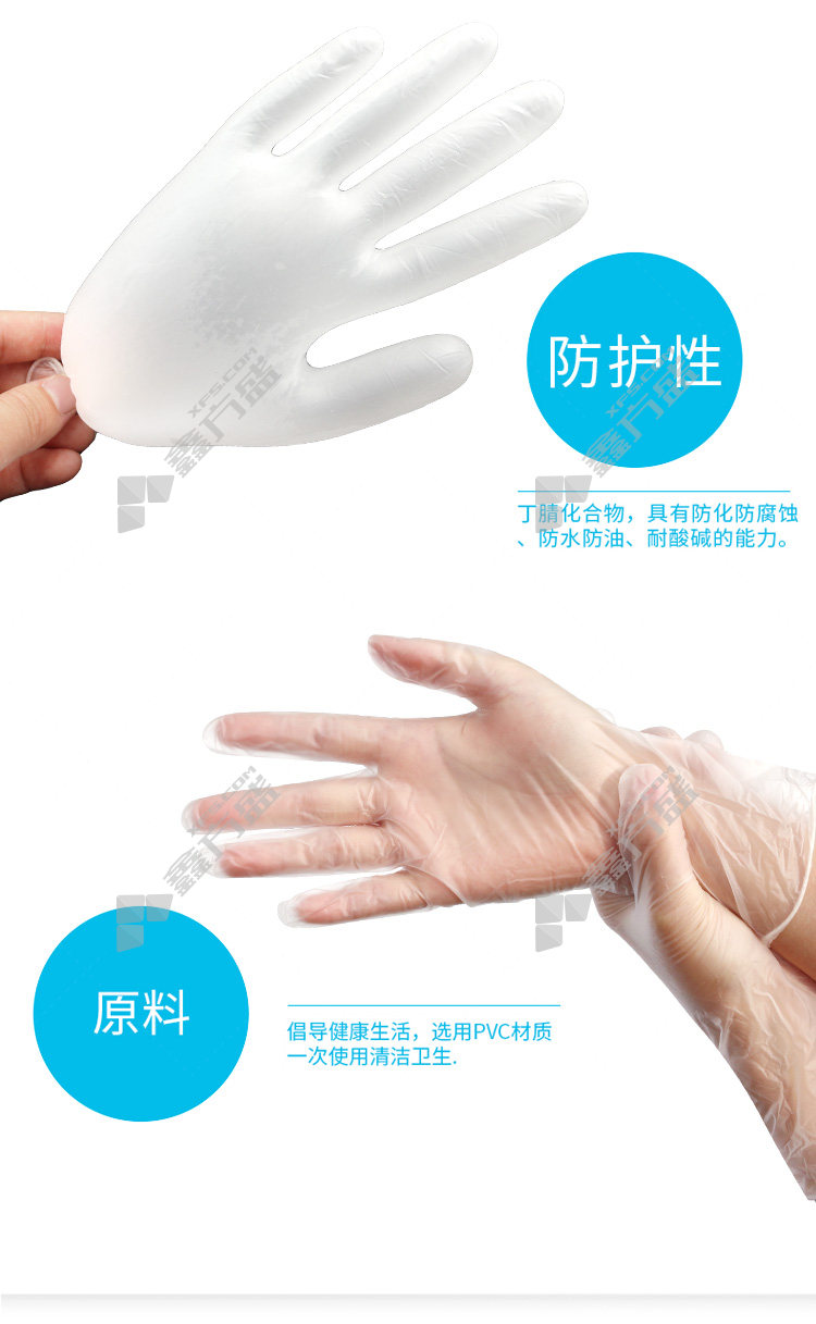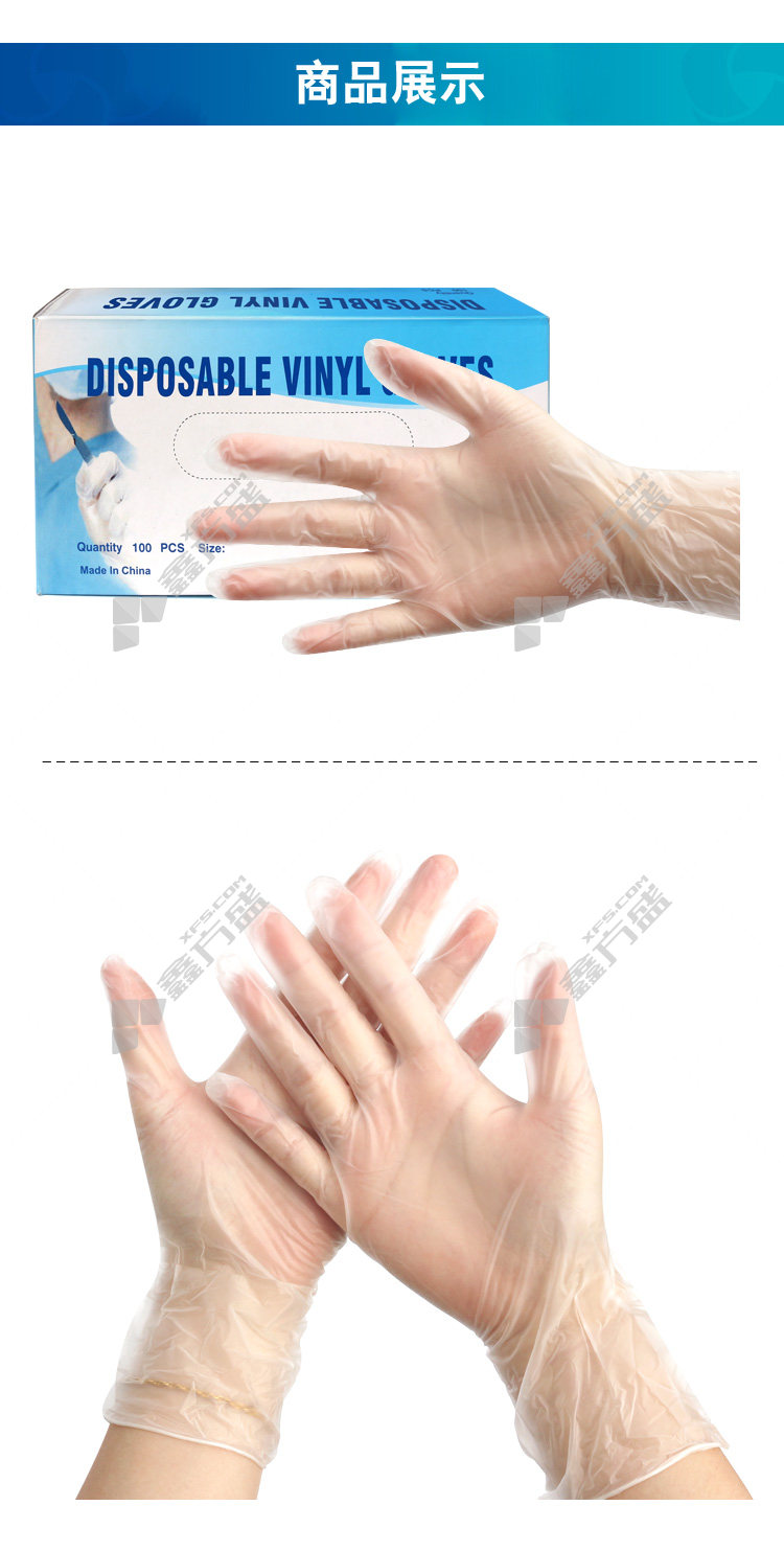 商品名称: 谋福 615一次性透明PVC手套 中号 透明色 615