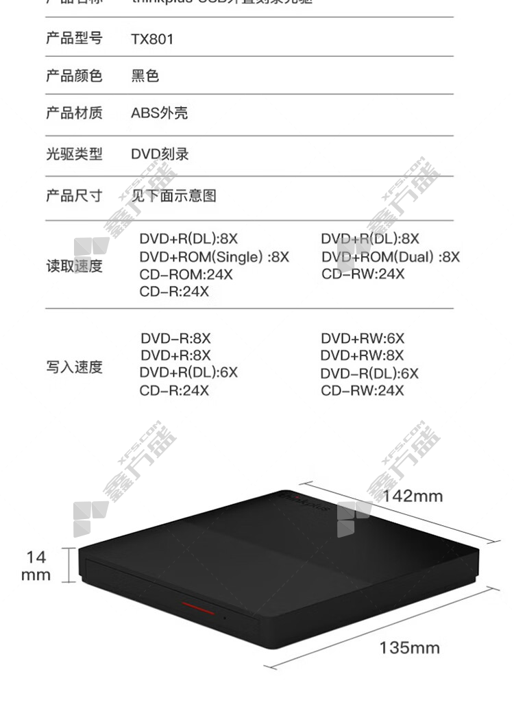联想 刻录光驱 TX801 142mm*135mm*14mm