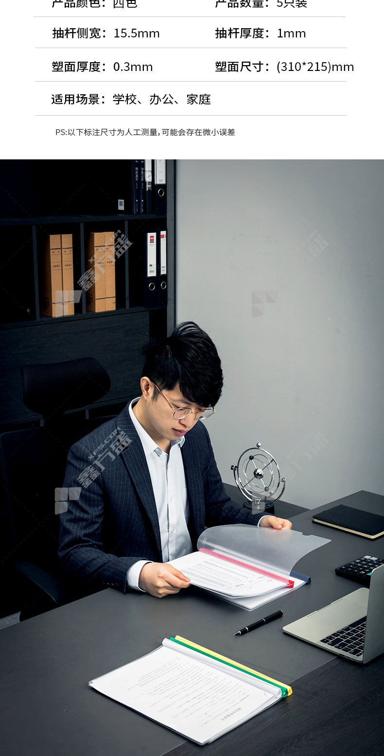 商品名称: 得力 5901 抽杆夹 310*215mm 绿色