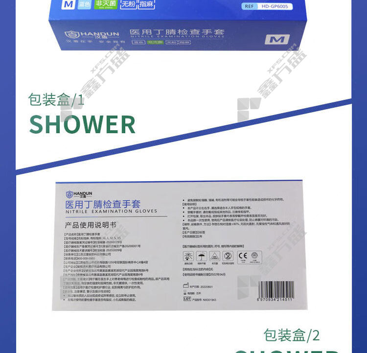 商品名称: 汉盾 单只4.0g一次性医用检查丁腈手套 M码 蓝色 HD-GP6005