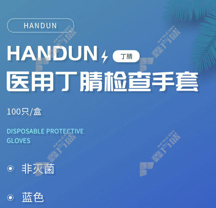 • 汉盾 单只4.0g一次性医用检查丁腈手套 M码 蓝色 HD-GP6005