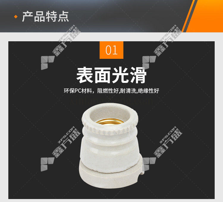 商品名称: 正辉照明 瓷灯头 E27/27 螺口 220V 50HZ 全螺纹 含一字固定架