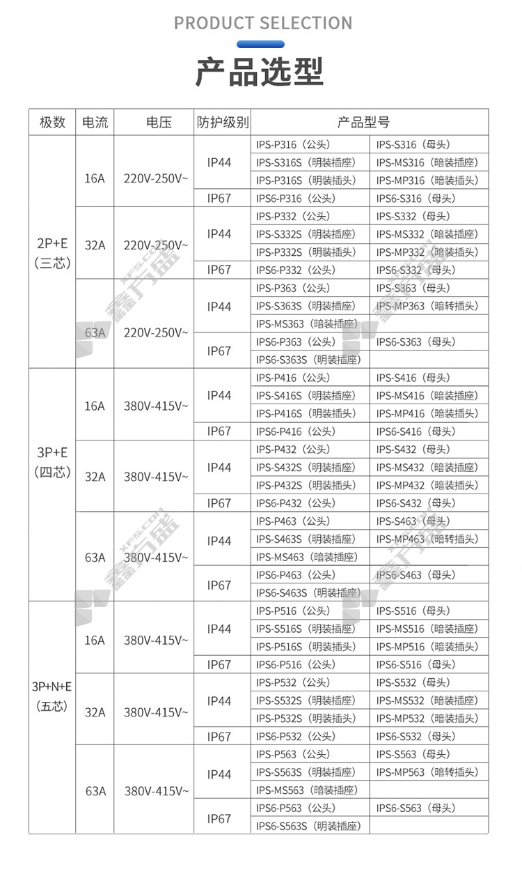 • 同为 IP44工业插头 IPS-S316 2P+E 16A 220V