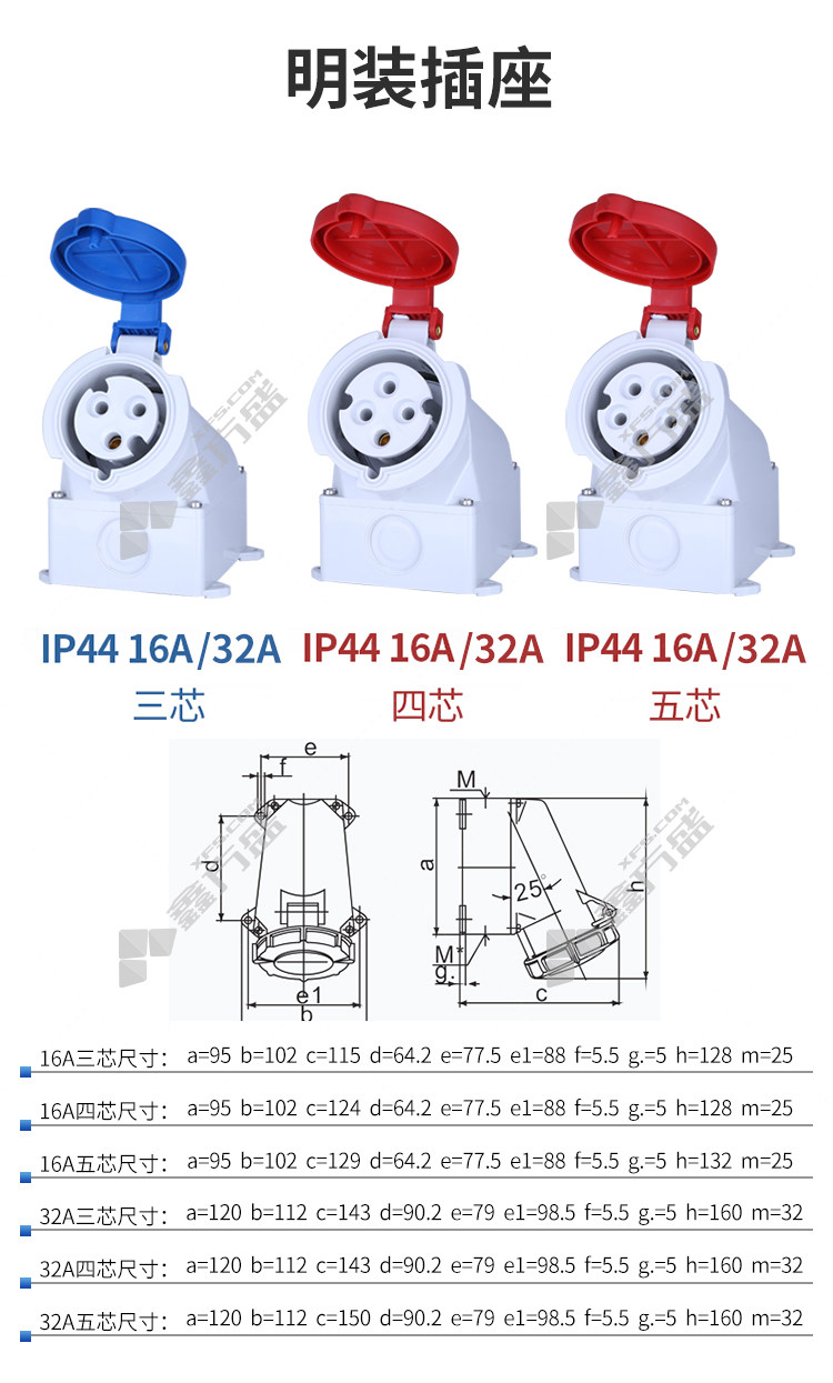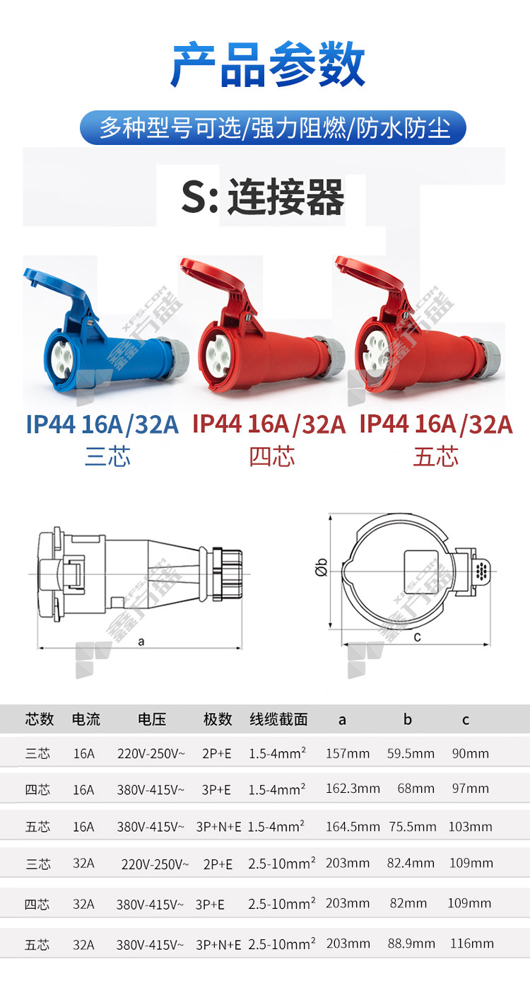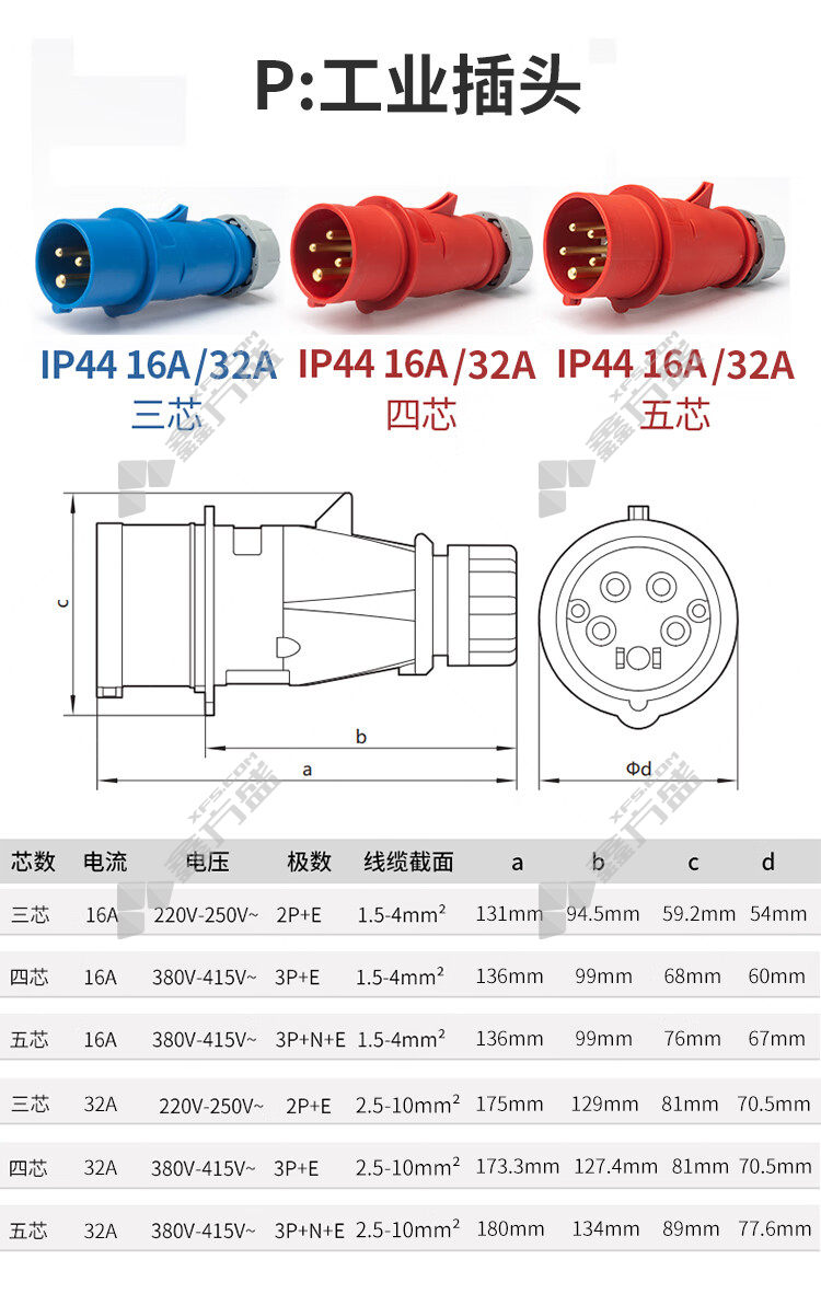 • 同为 三芯工业插头 IPS-P332 2P+E 32A 220V