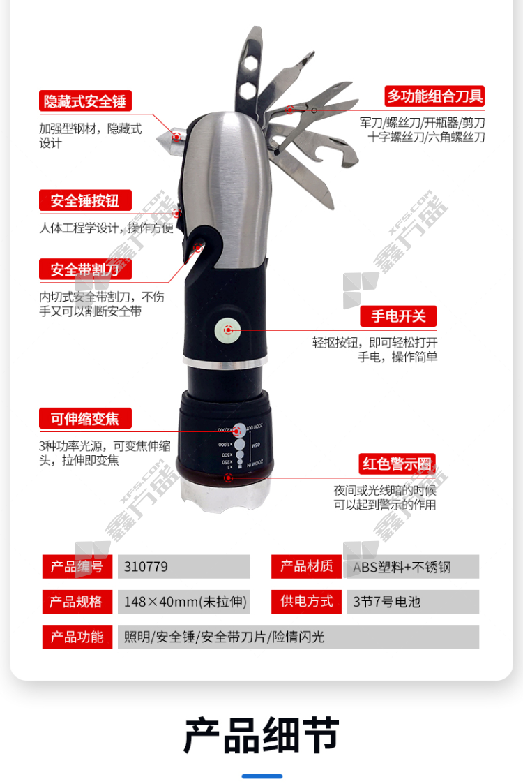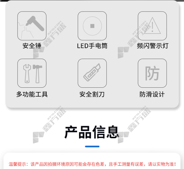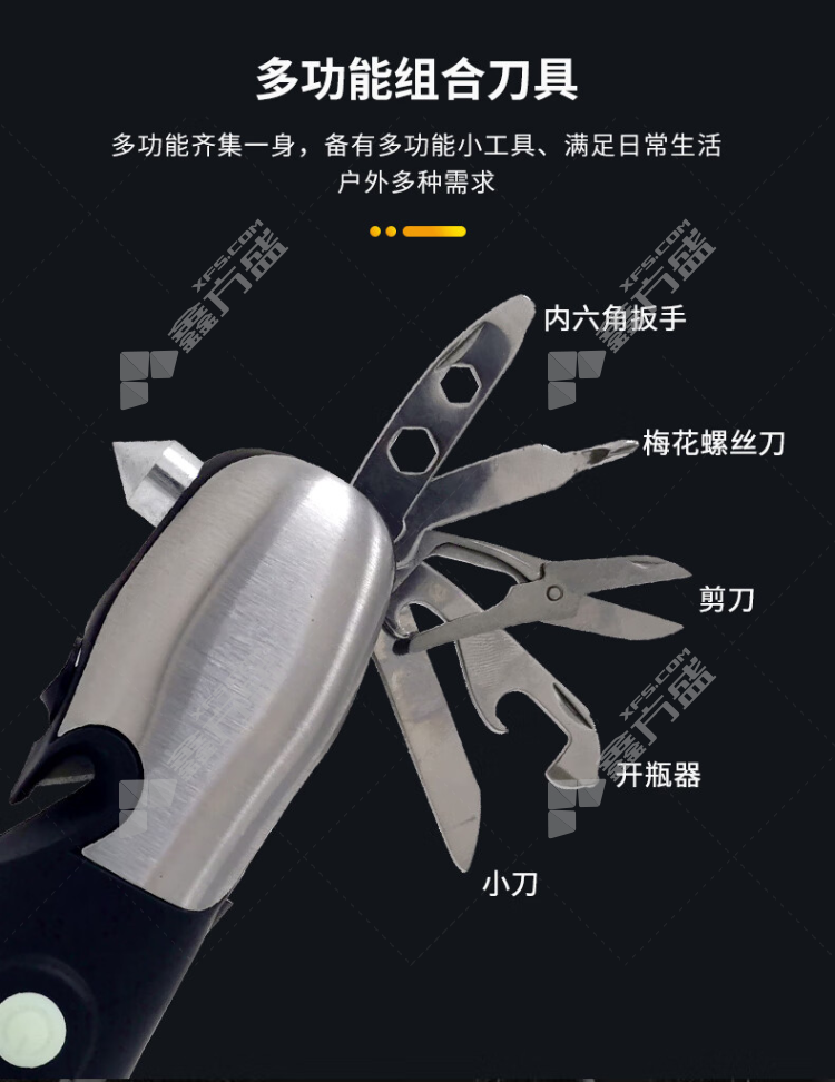 日用杂品功能:照明、安全锤、安全带刀片、险情闪光