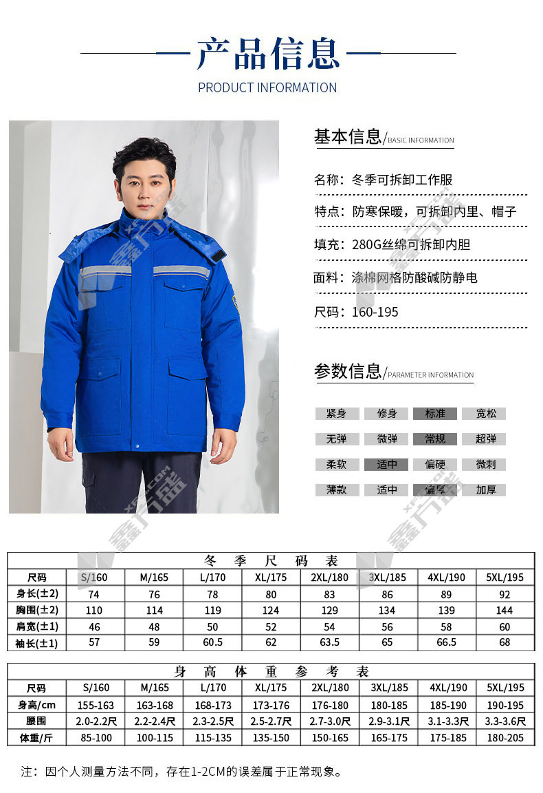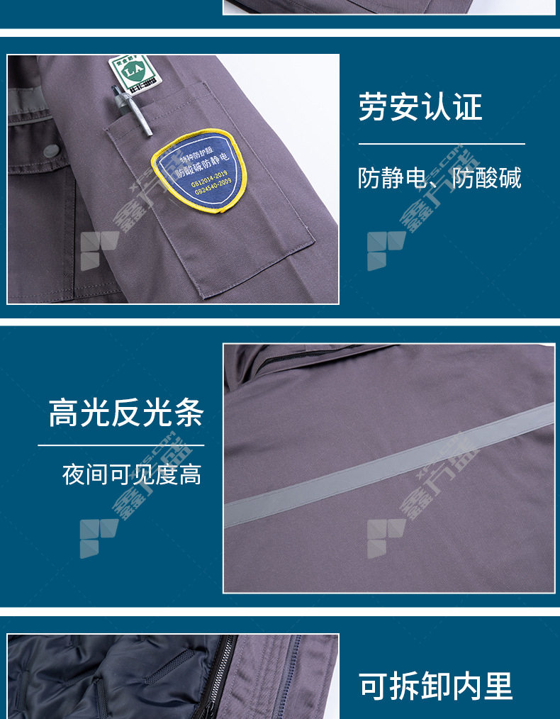 商品名称: 拓普瑞 T102冬季可拆卸防静电耐酸碱防水棉服 175 中灰色