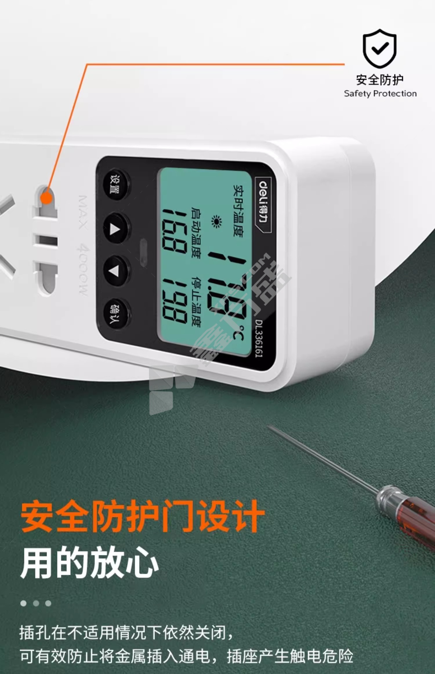• 得力仪带探头控温器插座 2500w/10A/气温探头336101