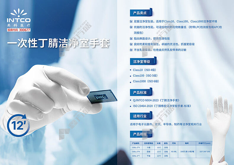 首页 首页 > 英科 12寸千级洁净一次性丁腈洁净室手套 M码 白色