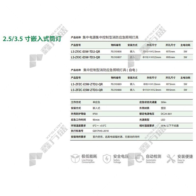 首页 首页 > 雷士照明 集电集控 应急筒灯 LS-ZFJC-E5W-TD3-QR 110mm*123mm 90min